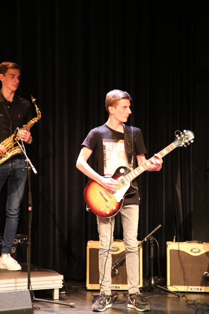 28 maart 2020 zou ik eigenlijk een optreden hebben, maar dat is door de corona helaas niet doorgegaan. Het is nu ondertussen al twee jaar later en ik mag eindelijk weer optreden tijdens de Popzolderavond bij Het Klooster. Er zijn speciaal voor deze avond verschillende ‘ad hoc’ bands samengesteld. Samen met mijn gitaarmaatje Anton zat ik in een bandje. Er zaten ook 3 muziekleraren van het Klooster in de band: Jelle op gitaar, Bram op de bas, en Harm op de trombone. Verder hadden we nog een zangeres Eva, twee drummers Kasper en Thijmen, en een saxofonist Niels. We speelden het nummer ‘Always on the Run’ van Lenny Kravitz. Ik moest het optreden in mijn eentje beginnen en later moest ik nog een solo improviseren.