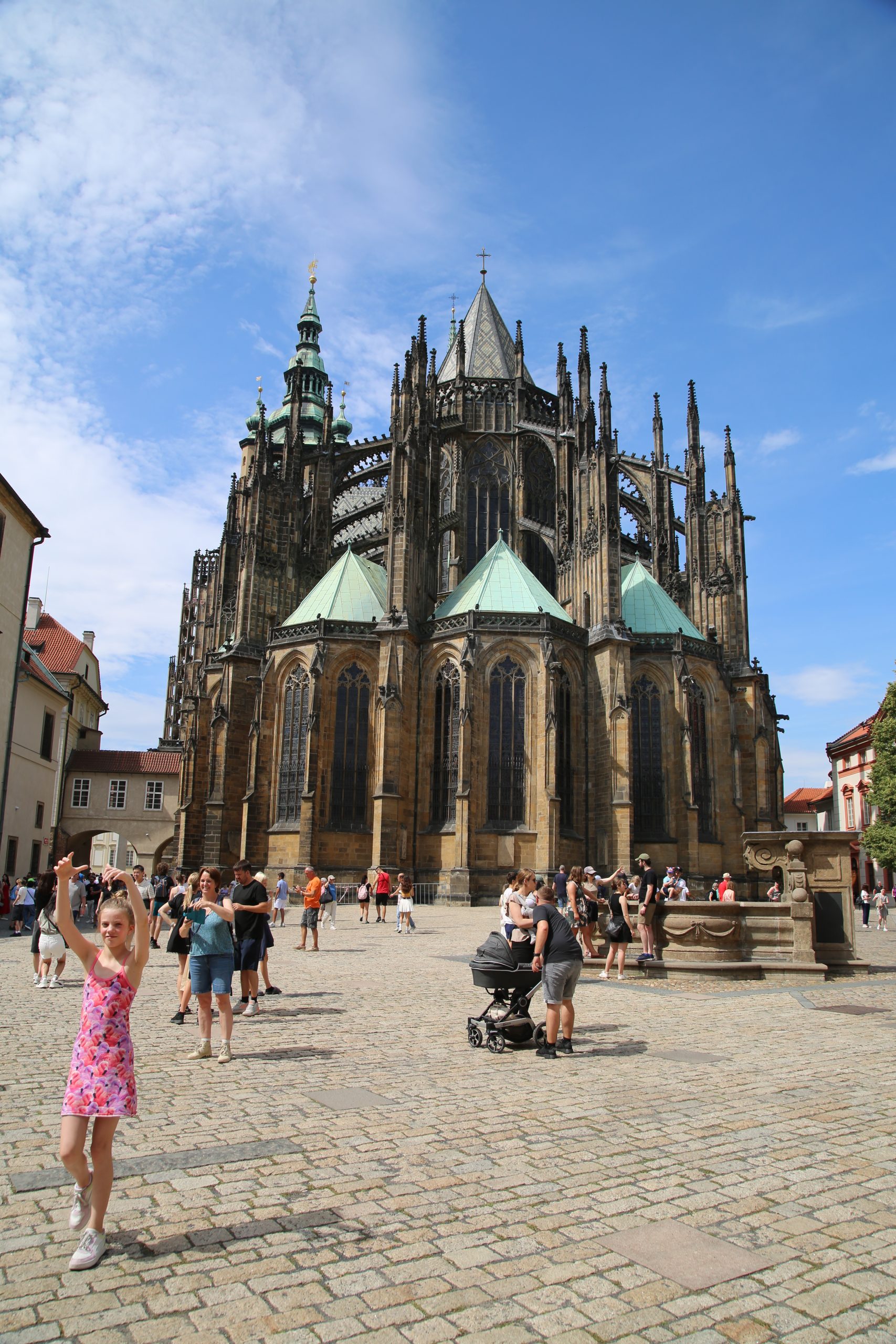 De Praagse Burcht is enorm groot, wel 45 hectare. Het is het grootste kasteel ter wereld en is de officiële residentie van de Tsjechische president. Het kasteel is gebouwd in de 10e eeuw. Het is eigenlijk niet één gebouw maar een complex van paleizen, kerken en zelfs woningen binnen de muren van het kasteel. We weten niet zo goed waar we moeten beginnen. We lopen eerst naar het Burchtplein (Hradčanské náměstí), vanwaar we een goed uitzicht hebben over de stad.