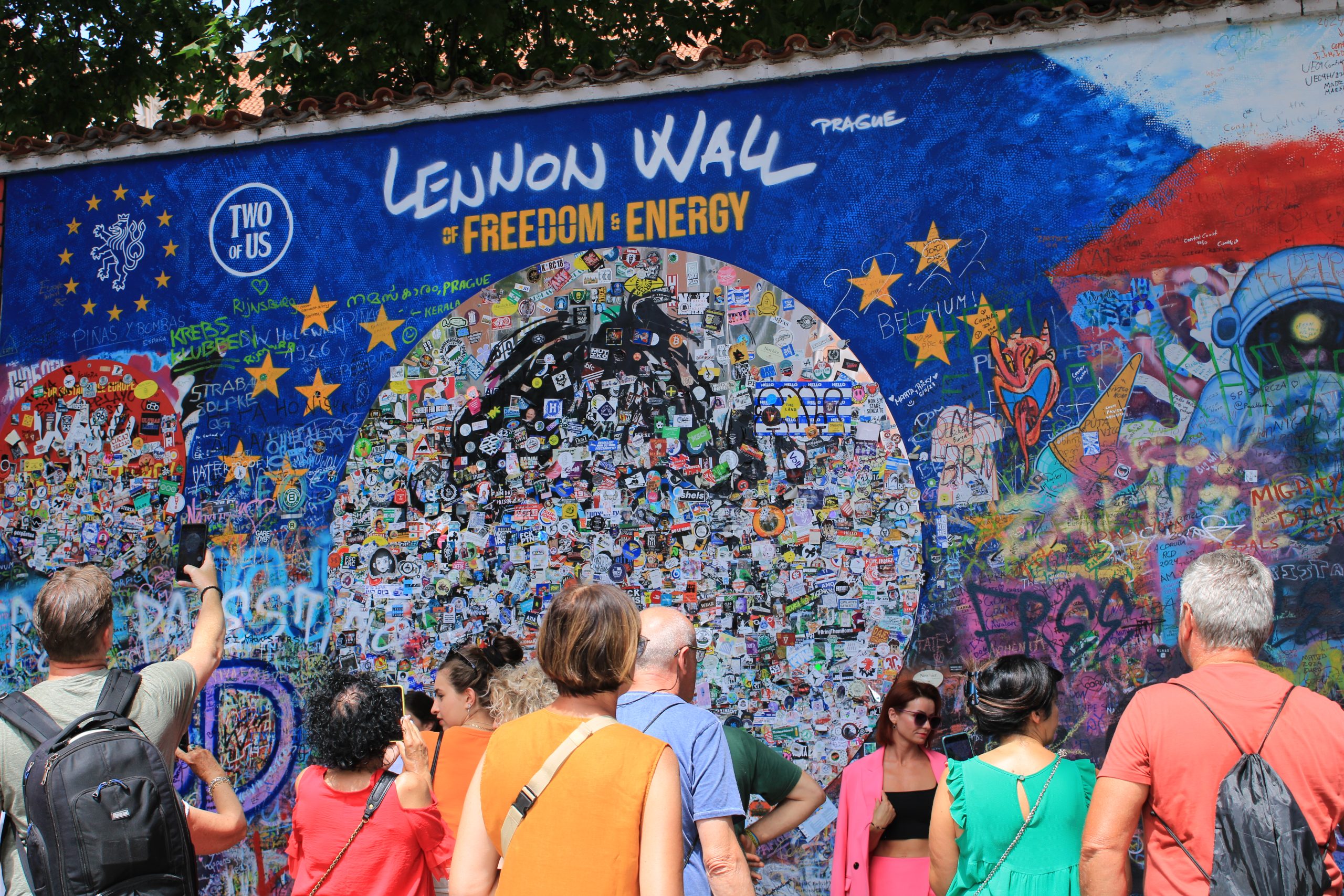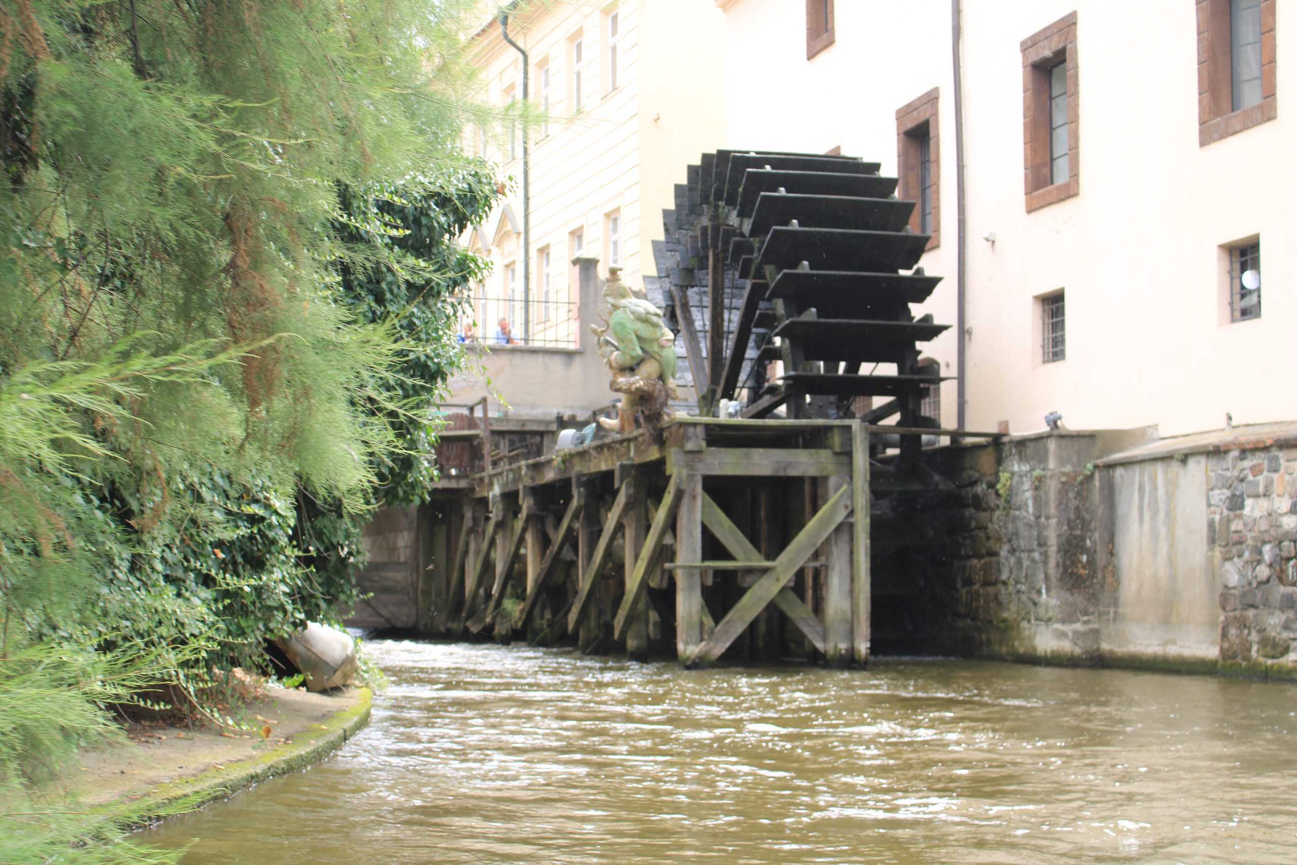 We lopen verder en komen, doordat we de massa toeristen met gids volgen, toevallig bij de John Lennon Wall. Iets verder komen bij het waterrad in de Čertovka. Het wordt hier ook wel het Venetië van Praag genoemd.