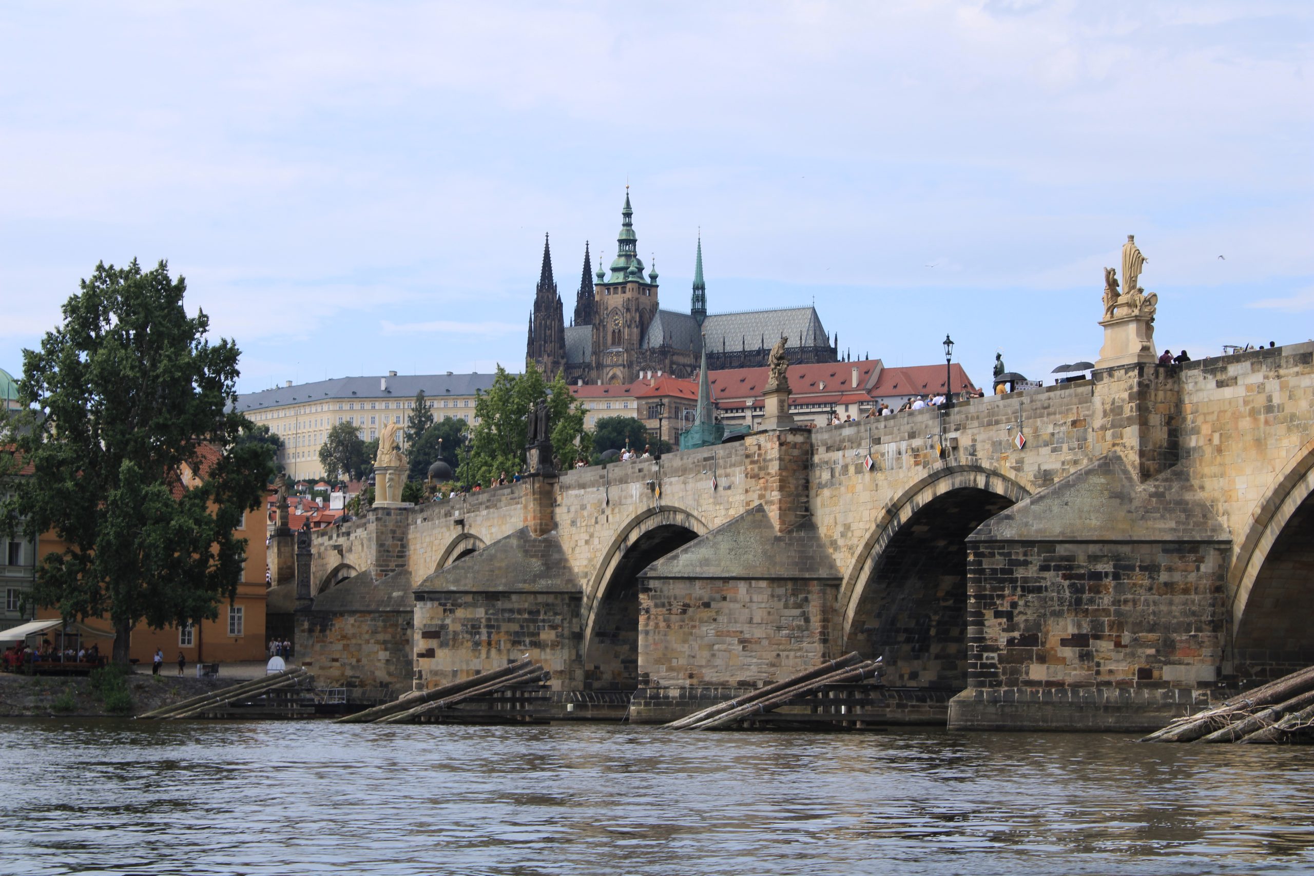 Rondom de Karlsbrug proberen meerdere mensen in matrozenpakken een boottour te verkopen. Dat lijkt ons wel wat. We wandelen rustig naar het begin van de Karlsbrug en kopen een kaartje voor een rondvaart over de Moldau en door Klein Venetië. Onderweg krijgen we informatie over de bezienswaardigheden waar we langs varen. Ook hoorden we dat ze vroeger dachten dat er in de 14e eeuw tijdens de bouw in het cement van de Karlsbrug rauwe eieren verwerkt waren voor de stevigheid. Mensen geloven dat de brug het daardoor zo lang volhoudt. Dit blijkt een hardnekkige mythe te zijn, maar het verhaal is wel grappig natuurlijk. Ook krijgen we foto’s te zien van de overstromingen in Praag in 2002 en hoe de Karlsbrug zich tijdens deze erge overstroming staande heeft gehouden.