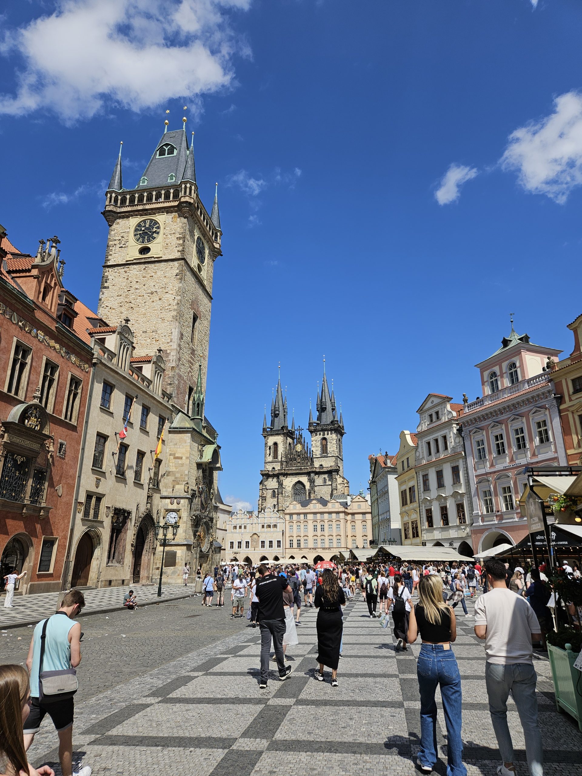 De benen zijn flink moe geworden van al dat slenteren. We sluiten de dag in het oude centrum af op het terras van Starbucks. Wat hebben we veel gezien in Praag. We vinden het een prachtige stad.