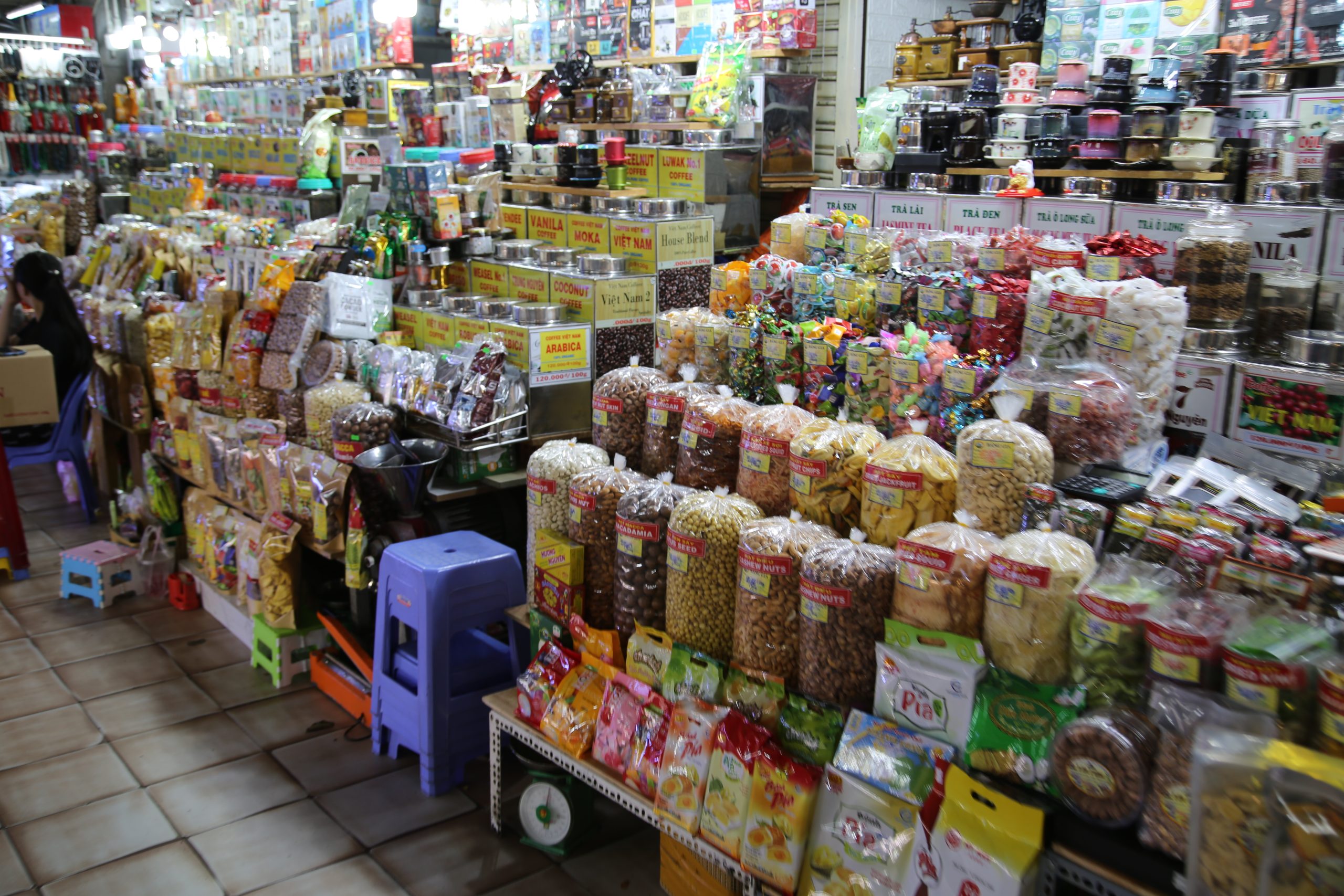 We wandelen verder naar de Bến Thành Market, de oudste markt (1912) van Hồ Chí Minh City en tevens een van de oudste nog bestaande bouwwerken van de stad. De markt heeft een oppervlakte van ruim 13.000 m². Het is hier al gezellig druk volgens Mascha en Kirsten en veel te vol volgens Dave en Jasper. Overal waar we kijken zien we goedkope souvenirs, t-shirts, sandalen en petjes.