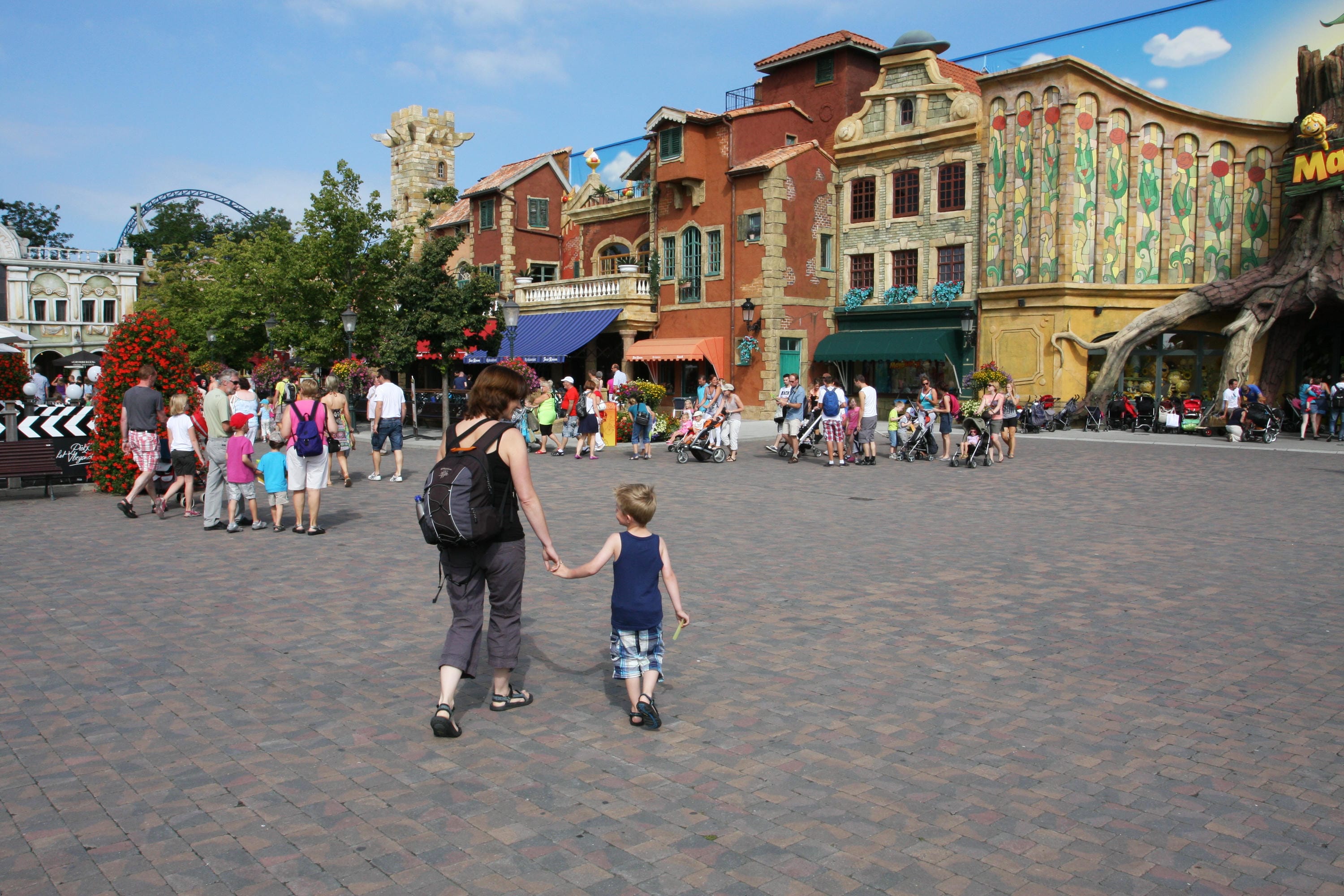 Om 10:15 uur komen we aan in Plopsaland. Het is er aardig druk en voor de eerste attractie, het kabouterbos, moeten we 45 minuten wachten. Ook de bij de tweede attractie, de tractoren, is de wachttijd erg lang, ruim 30 minuten. Gelukkig hoeven we bij de andere attracties minder lang te wachten. Om 2 uur is er een optreden van Samson en Gert. De muziek wordt verzorgd door een echt orkest. Rond 18:30 uur gaan we op zoek naar ons hotel in Oostduinkerke. We hebben nog niet eens de helft van Plopsaland gezien en Jasper is ook echt nog niet klaar.