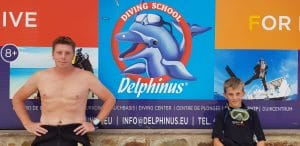 2018 Gran Canaria: helemaal klaar voor de 2e buitenwaterduik van Jasper.