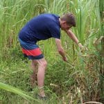 Daarna worden we met een klein groepje naar een hoger gelegen punt gebracht, waar we speciaal gras voor de olifanten moeten verzamelen. Eerst krijgen we een korte uitleg over wat we allemaal gaan doen en worden de veiligheidsregels uitgelegd. Daarna verzamelen we zo veel mogelijk gras. Een paar mannen krijgen een kapmes en moeten het gras ‘kappen’. De anderen laden het gras in de pick-up. Met de wagen volgeladen rijden we door naar de voederplek. Al snel komen er twee olifanten aanlopen die wel trek hebben en in een hapje. Terwijl de olifanten smullen van het eten mogen we met ze op de foto. Later komt er nog een derde olifant bij. Een van de olifanten in zwanger. We zien en voelen het jong in de buik bewegen.