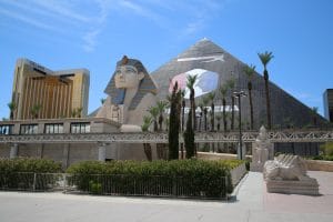 2019 USA: De grote sfinx en de piramide van het Luxor.