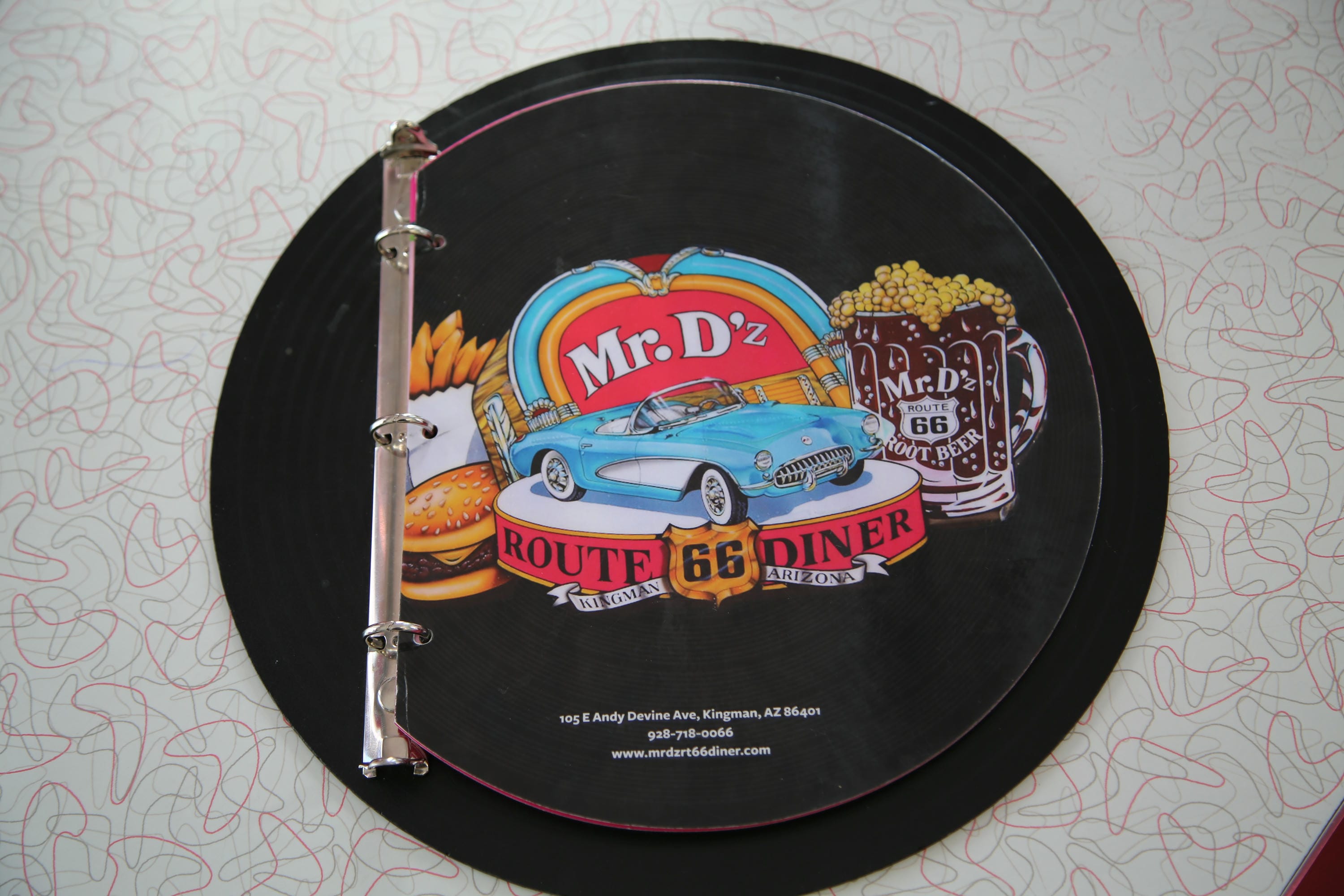 2019 USA: Kingman – Mr D’z, menukaart in de vorm van een vinyl plaat.