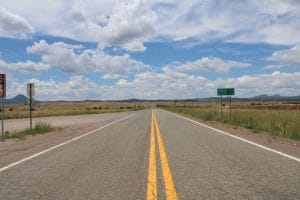 2019 USA: Route 66 – tot in de verte een lange rechte weg.